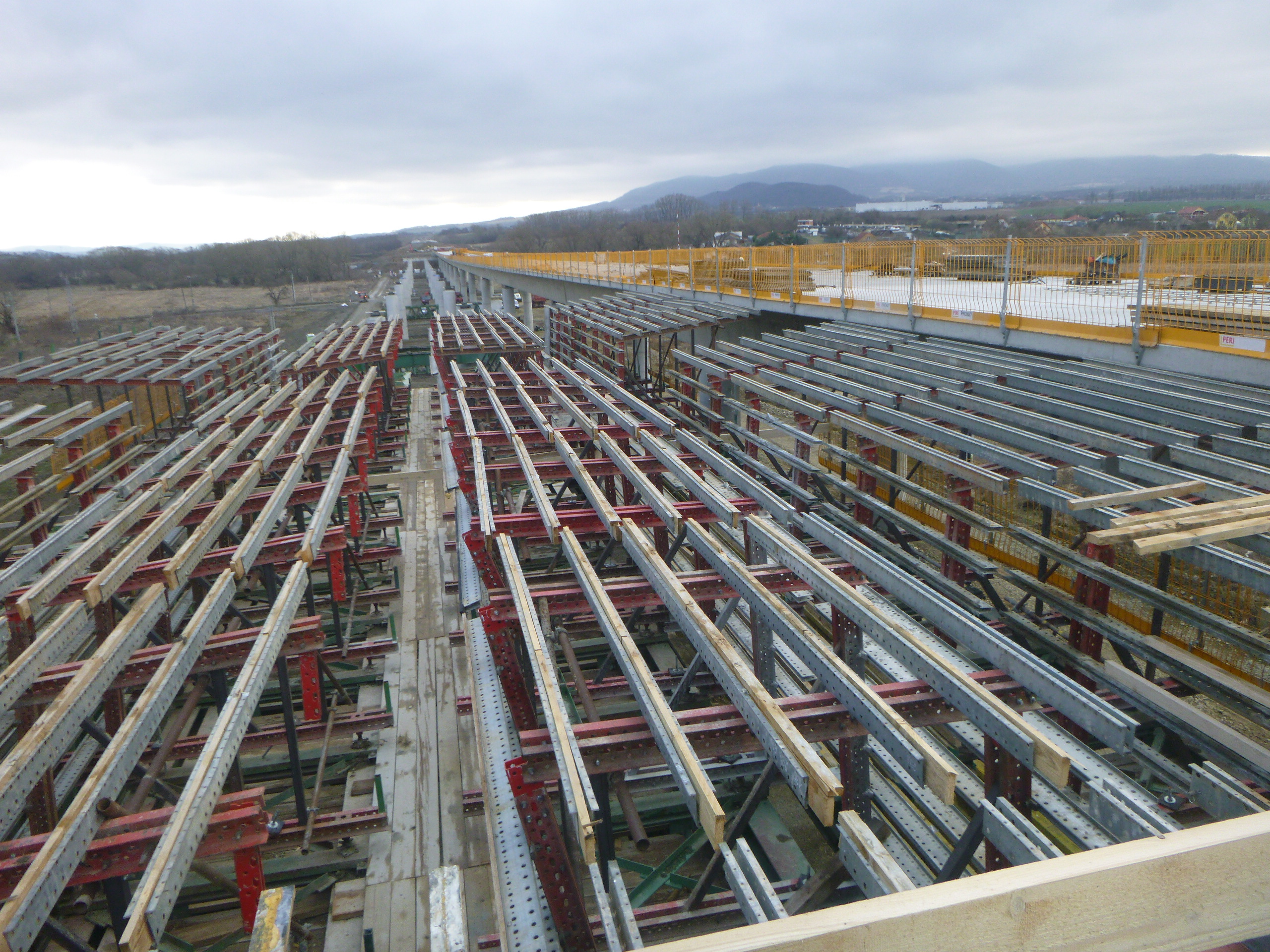 Čo sa týka ďalších objektov. Väčšina mostov už má dokončené zakladanie aj piliere, v tomto roku je na pláne najmä dobudovanie ich nosnej konštrukcie. Následne sa začne aj s budovaním konštrukcie vozovky medzi jednotlivými mostami. Ďalej pokračujú i práce na dažďovej kanalizácii a na výkopoch.
