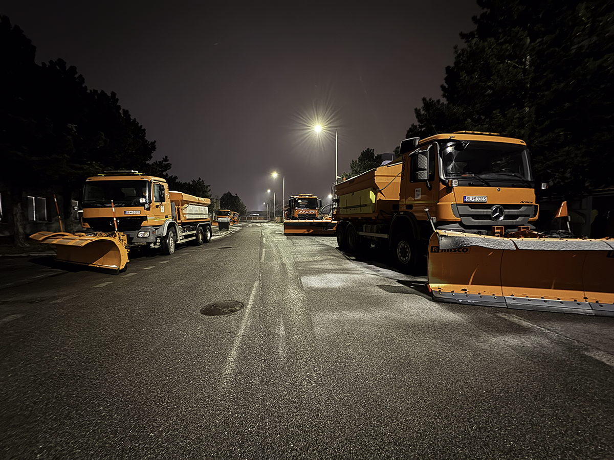 The night from Monday (12.1.) to Tuesday (13.1.) was one of the most difficult nights in terms of maintaining the most important traffic routes in the Bratislava and Trnava regions. All heavy machines were deployed to plough and grit the motorways. The most challenging traffic situation was in southwestern Slovakia, where 5,500 km were covered, and over 600 tons of gritting material were used.